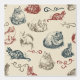motif de chat vintage sur un arrière - plan beige avec des courbes. Les chats sont tirés du livre Our Cats by Weir, 1892, avec l'aimable autorisation du Projet Gutenberg.