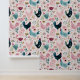 Charming cottage-style wallpaper featuring a whimsical chicken and floral pattern in soft blush pink, teal, and neutral tones. Perfect for kitchens, nurseries, or farmhouse-inspired spaces, this seamless design adds a cozy yet elegant touch to any room.