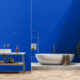 Bleu uni minimaliste WFH rouleaux arrière - plan ou écran Fond d'écran. Arrière - plan bleu pour zoom, vidéos, WFH, travail à partir de l'arrière - plan de bureau de zoom à domicile, écran chroma bleu, fond de touche chroma pour les vidéos pour bureau temporaire.