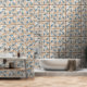 Papier Peint Coquillages Bleus Nautiques Sable Tan Faux Carreau