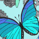 Crânes à vapeur papier peint à motifs avec crânes portant chapeaux, cogs, engrenages, papillons, libellules et ballons d'air chaud dans les tons bleu et gris