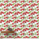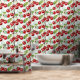 Une aquarelle ai illustration motif de cerises rouges brillantes, bâton vert sauge et papier peint peel.