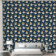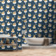 Motif adorable avec renards, oiseaux et ours en vedette sur un arrière - plan bleu foncé aux étoiles blanches et jaunes.