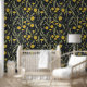 Papier Peint Dandelions, vert, jaune et noir