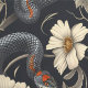 Papier Peint Dark Academia Snakes & Red and White Flowers