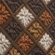 This crochet-inspired pattern showcases a beautifully detailed arrangement of granny-square florals set on a diagonal grid, creating a warm and inviting tapestry-like effect. Each square features a starburst-style flower rendered in richly textured yarn, with shades of ivory, caramel, chestnut, espresso, and golden ochre giving the design a cozy earth-tone palette. The squares are connected by thick, braided borders that enhance the handcrafted feel and add rhythmic structure across the seamless repeat.
