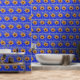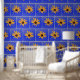 Papier Peint Elégant bleu gris jaune Fleurs carreaux carrées