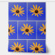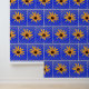 Le design comprend une photo de fond de fleur marguerite jaune soleil aux yeux noirs sur un motif carrelé bleu carré. Pour des questions ou des demandes spéciales, contactez l'artiste à l'adresse wafadahdalcreates@gmail.com. © Wafa Y. Dahdal - Tous droits réservés. Art WD