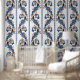 Des rayures alternent avec des motifs floraux décoratifs de Noël, sur ce beau papier d'emballage de vacances inspiré William Morris.