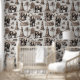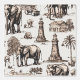 Ce luxueux papier peint présente un ensemble d'éléphants africains gris, ainsi que des monuments ou des statues mineurs.