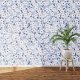 Modèle unique et frappant de fleurs de cerisier blanc sur un arrière - plan bleu poudre clair. Art original de Nic Squirrell.