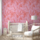 Papier Peint Fleur sauvage botanique rose et orange