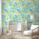 Papier Peint Fleurs d'aquarelle bleu et jaune peintes à la main