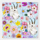 Un profil de portrait d'une chèvre blanche de montagne. Les fleurs sauvages sont tout autour de la chèvre de montagne, le tout dessiné dans un style tatouage dans un décor bleu