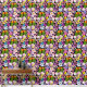 Deux inséparables ensemble sur une branche d'arbre avec des fleurs roses, jaunes, blanches et violettes sur fond de noir