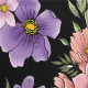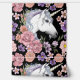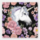 Une licorne blanche aux fleurs roses, pêche et lavande, le tout sur fond noir