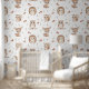 Transformez la chambre de votre enfant en une forêt magique avec ce papier peint charmant représentant des animaux des bois. Ce motif sans raccord présente des personnages adorables et illustrés à la main, notamment un faon, un hérisson amical, un écureuil duveteux et un hibou sage, entourés de champignons confortables et de feuilles rustiques.