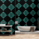 Le papier peint vert moderne de formes géométriques noires a une belle conception géométrique moderne qui ajoutera un élégant motif moderne sophistiqué à n'importe quel mur.