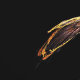 Une image fractale multicolore (rouge, jaune et orange) en spirale, ressemblant à un oiseau ou à un dragon plumé, sur un arrière - plan sombre.