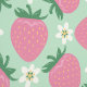 Papier Peint Fraises Et Fleurs Roses Sur Mint Green