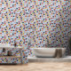 De mignons petits visages de chat kitty sur un arrière - plan bleu ciel pastel, parfait pour les amoureux des animaux. Art original de Nic Squirrell.