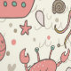 Funny summer seamless pattern with ships, jellyfish, seahorse, lighthouse, seagull, octopus, crab, whale. La texture de la mer. Travel vacation background. © and® Bigstock® - All Rights Reserved.