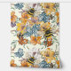 Cette oeuvre d'art animée présente une composition vivante de bourdons et de fleurs complexes en pleine floraison. Les éléments floraux, dans des tons riches d'orange, de bleu et de jaune, créent une tapisserie colorée qui contraste magnifiquement avec les illustrations détaillées des abeilles. L'arrière - plan crémeux améliore la vitalité des fleurs et l'énergie dynamique des abeilles bourdonnantes, ce qui donne un motif vivant et engageant qui célèbre l'harmonie de la nature.