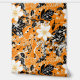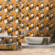 Un motif sans soudure avec de grandes fleurs blanches, de minuscules fleurs blanches, des feuilles noirs et de petites notes de musique noire sur un arrière - plan orange. Le design est peint à la main, mêlant éléments floraux et motifs musicaux pour créer une composition harmonieuse et artistique.