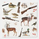 A design hunting theme design featuring countryside woodland animals such as deer, stag, buck, duck, hare, pheasant, quail and grouse etc. A great design for anyone who loves hunting, camping, the countryside and is an outdoorsman or sportsman. A great hunting party theme design, home decor or personalized hunting theme gift.