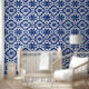 Papier Peint Indigo bleu méditerranéen et plateau blanc