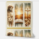 Ce papier peint d'art religieux magnifiquement conçu présente trois scènes profondément spirituelles, capturant l'essence de la foi et de la dévotion. À gauche, Jésus-Christ est représenté par une couronne d'épines, son regard reflétant la solennité et la grâce. Le centre est doté d'une croix rayonnante baignée de lumière dorée, symbolisant le salut et l'espérance éternelle. A droite, le Christ sur la croix est entouré de fleurs délicates, signifiant sacrifice et rédemption. Décorée de coquillages d'oeufs aux élégantes touches dorées, cette aquarelle rehausse l'atmosphère sacrée et apporte une touche personnelle. Ce Fond d'écran d'art religieux est significatif pour ceux qui chérissent leur foi.