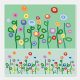 Répétez le motif artistique de Jolies fleurs sauvages en bandes horizontales sur un arrière - plan vert et bleu doux Pourrait convenir à une pépinière ou une salle de jardin Changer la couleur arrière - plan si vous avez besoin de votre décor