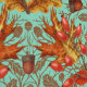 Lapin peint à la main et flore automnale - feuilles; champignons; glands et baies