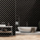 ÉCHELLE MOYENNE 6 pouces motif répéter. Moody ebony black grasscloth comme texture avec un léopard de marche de style vintage moderne, illustration botanique naturelle en couleurs neutres. Parfait pour un mur avec accent, une petite baignoire d'hôtes, une décoration moderne audacieuse jusqu'au thème classique anglais ou français masculin pour la chambre, le bureau ou la bibliothèque. Disponible en plusieurs échelles pour grands et petits espaces. Art par Audrey Jeanne Roberts, artiste et designer de renommée internationale ©. L'oeuvre d'Audrey Jeanne est disponible en licence par l'entremise de MHS Licensing.