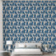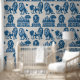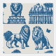 Ce luxueux papier peint présente un ensemble de lions à l'encre bleue.