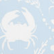 White lobsters, crabs, and seashells form a coastal damask on pale blue. Ideal for breezy coastal, nautical, or cottage style.