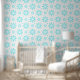 Papier Peint Marguerite délicate blanche et turquoise, motif à