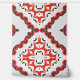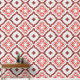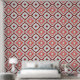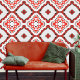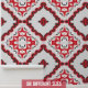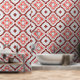 Ce papier peint peel and stick présente un design captivant et audacieux. Le papier peint présente un motif géométrique répétitif. Il se compose de formes diamant et qua-trefoil disposées de manière complexe. Chaque diamant renferme un qua-trefoil qui, à son tour, contient un motif diamant plus petit au centre. L'effet global est visuellement captivant. Les couleurs dominantes sont le rouge, le blanc et le noir. Ces teintes créent un contraste saisissant et évoquent un sentiment de vibrations. Le style s'inspire de l'art marocain traditionnel. La géométrie symétrique et la répétition rythmique rappellent les motifs de carreaux marocains.