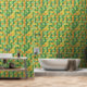Papier Peint Mi-siècle Abstrait vert orange jaune