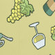 Vin blanc. Bouteille, verre, tire-bouchon et raisins. Motif sans couture. Couleur arrière - plan personnalisée.