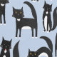 Amusants petits chats Tuxedo noirs et blancs sur un arrière - plan bleu ciel pastel, parfait pour les amoureux des animaux. Art original de Nic Squirrell.