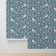 Papier Peint Motif bleu Dusty aux oiseaux blancs