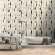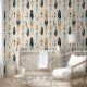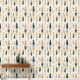 Ce superbe papier peint a un motif amérindien en plumes en plus des pois, en tanins, pêche et blues contre un arrière - plan couleur crème.