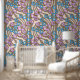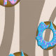 Des beignets à glaçage rose et bleu avec des arroses sur un arrière - plan tourbillonnant de café.