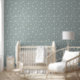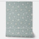Papier peint simple et moderne avec un motif d'illustrations florales crème sur un arrière - plan vert sage.