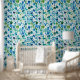 De beaux papiers peints sont ornés d'une motif en terrazzo aquarelle dans les bleus et les verts de l'océan.