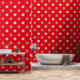 Pois d'or dans un motif transparent sur un arrière - plan rouge.