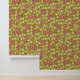 Papier Peint Motif Retro Rose & Fleurs Vertes