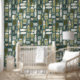Papier Peint Motif vert moderne du milieu du siècle