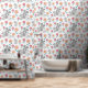 Mignonne souris mère avec bébés et fleurs papier peint de pépinière motif. Un joli motif d'une mignonne souris grise avec ses bébés et des fleurs de corail ornent ce design.